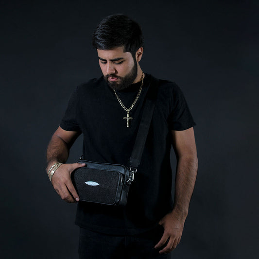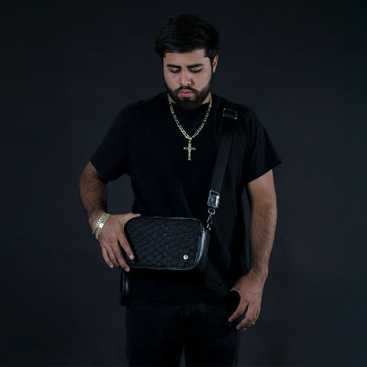 Sobaquera de Piel de Pescado Negro BL201