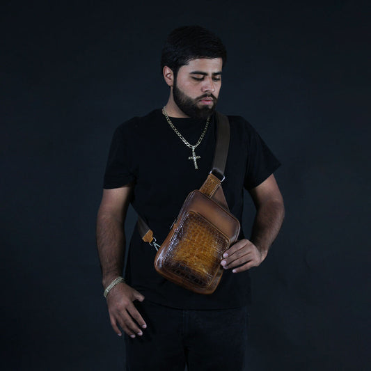 Sobaquera de Piel de Cocodrilo Coñac BL501