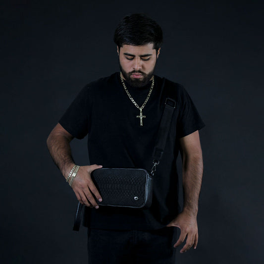 Sobaquera de Piel de Pitón Negro BL302