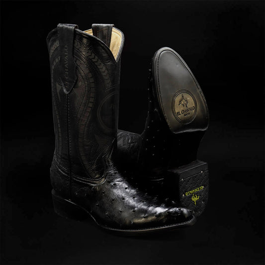 Bota Oval de Avestruz Negro CH116