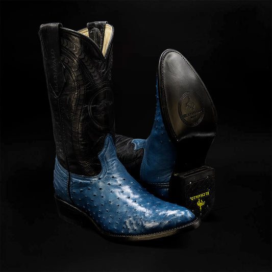 Bota Bulldog de Avestruz Azul CH103