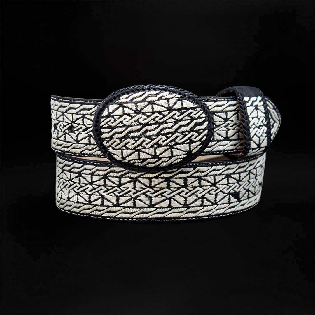 Elegante cinturón fabricado con hilo de pita extrafino y piel genuina de res. El tejido de hilo de pita crea patrones distintivos que resaltan sobre la textura natural de la piel, ofreciendo un accesorio cómodo que complementará perfectamente su vestimenta casual o formal.